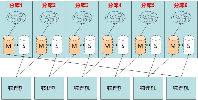 为了节省数据库的机器数量,可以采用下图中的方式部署: