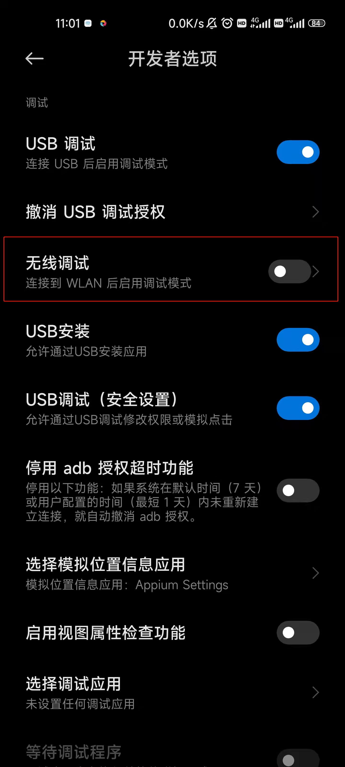 这种方式适用于Android版本10及一下的手机,需要借助USB。首先要确保手机和电脑在同一个局域网内(连接同一个WiFi),其次需要在开发者选项里面将无线连接打开,进入可以查看到手机设备的IP,并且通过USB连接手机和电脑。