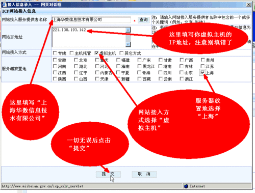 3、填写备案信息:在备案服务商的网站上,按照要求填写您的网站信息,包括网站名称、域名、服务器地址、服务内容等,您还需要上传相关的证明材料。