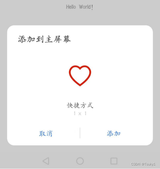 设置了一个控件的点击事件,然后加入上述代码,运行后点击就会出现下面的添加快捷方式的按钮