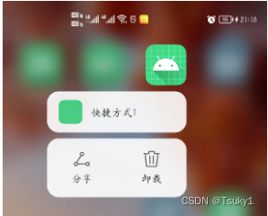 讯享网ShortcutManager shortcutManager=getSystemService(ShortcutManager.class); if (Build.VERSION.SDK_INT >= Build.VERSION_CODES.O) { if (shortcutManager.isRequestPinShortcutSupported()){ Intent intent=new Intent(MainActivity.this,TsukyActivity.class); intent.setAction("android.intent,action,VIEW"); //如果ID是my_shortcut的快捷方式已经存在,就用已有的信息 不存在则设置 ShortcutInfo shortcutInfo=new ShortcutInfo.Builder(MainActivity.this,"my_shortcut") .setShortLabel("快捷方式") .setIcon(Icon.createWithResource(this,R.drawable.heart)) .setIntent(intent).build(); //请求添加Pinned快捷方式 shortcutManager.requestPinShortcut(shortcutInfo,null); } }