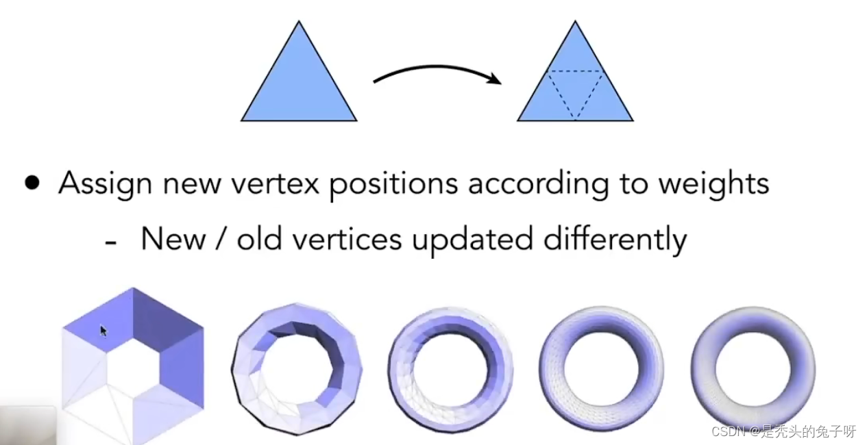 由上图三角面少和三角面多的对比,三角面少的部分有突出棱角,三角面的突出棱角更少越来越平滑,如何做增加三角面的操作呢?