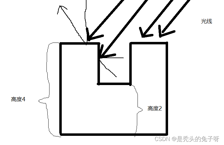 假设黑色部分高度为2,白色部分高度为4,通过不同的法线,反射的光线不一样