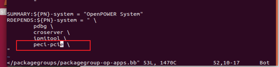 Vi packagegroup-op-apps.bb,增加peci-pcie \这样一行。