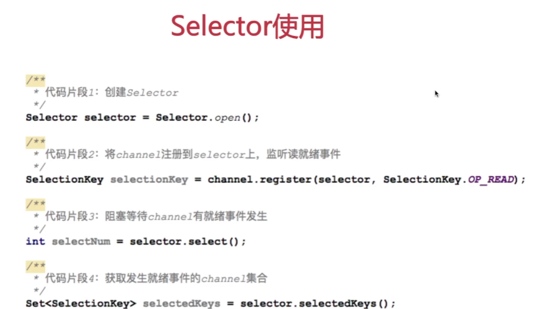 SelectionKey的4个监听就绪事件:connect连接就绪、accept接收就绪、read读就绪、write写就绪。
