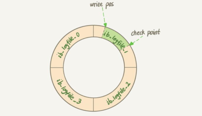 redo 日志是循环写入的,因为 InnoDB 的 redo log 是固定大小的,比如可以配置为一组 4 个文件,每个文件的大小是 1GB,那么这块“粉板”总共就可以记录 4GB 的操作。从头开始写,写到末尾就又回到开头循环写,如下面这个图所示:write pos 是当前记录的位置,一边写一边后移,写到第 3 号文件末尾后就回到 0 号文件开头。checkpoint 是当前要擦除的位置,也是往后推移并且循环的,擦除记录前要把记录更新到数据文件。