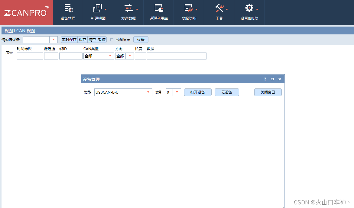 1、硬件连接:将CAN工具接到要测试的CAN网络中(若有多路CAN,需要接到对应CAN的pin脚上,连接后对应的CAN才会有收发报文),USB线接到电脑上。
