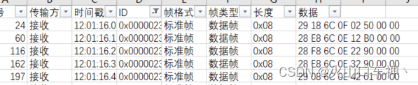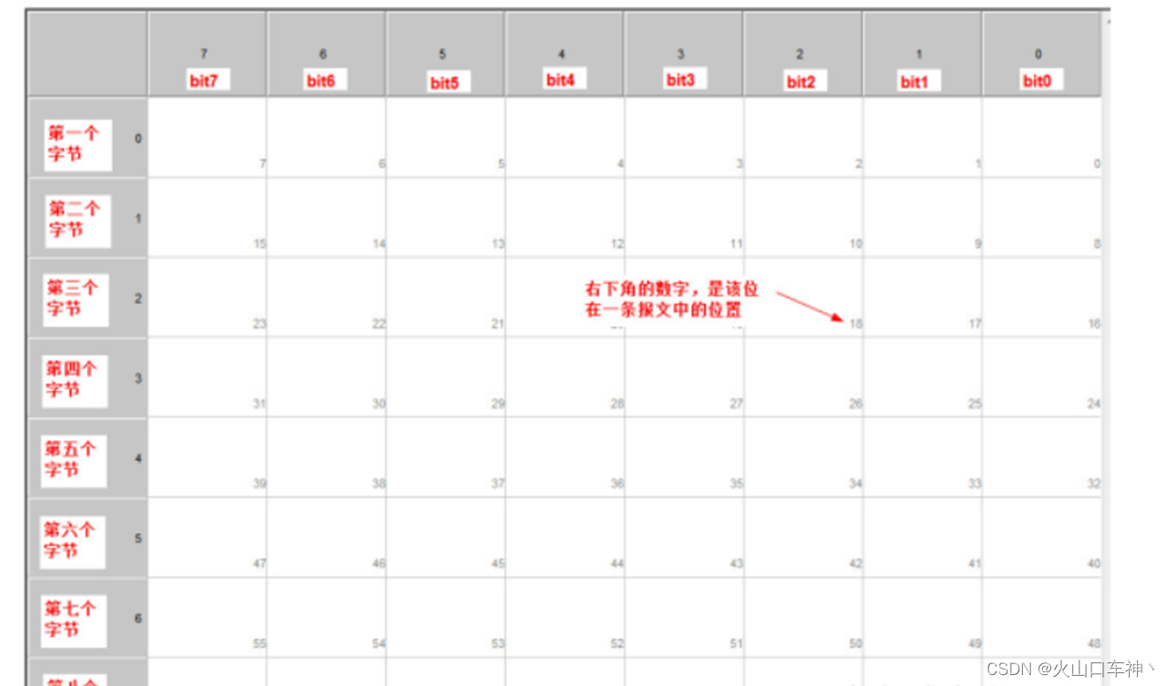1、一般情况下,一条报文消息包含8个字节的数据,共64位。比如上图第一行中,ID为0x18FFC5A9的消息数据是:05 00 01 09 00 00 00 08,数据格式是16进制数,从左到右是第一个字节到第八个字节,也有称为每0个字节到第7个字节的。