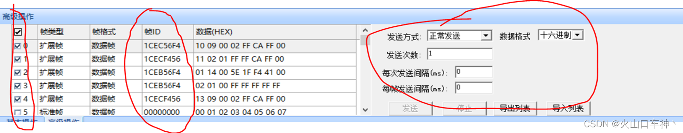 5、在“高级操作”模式下,可同时设置多条报文内容,再控制发送模式。