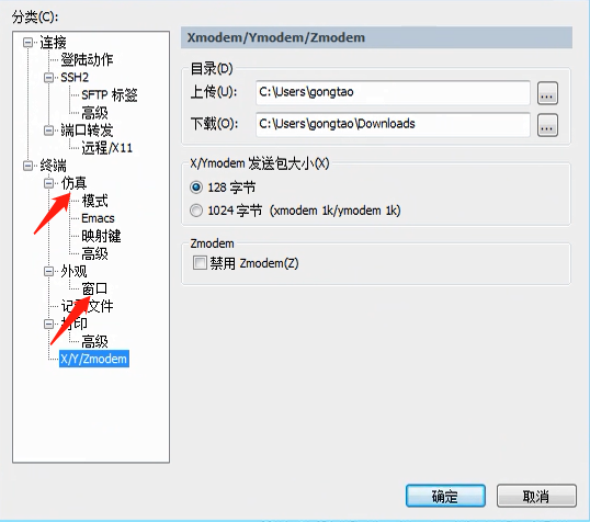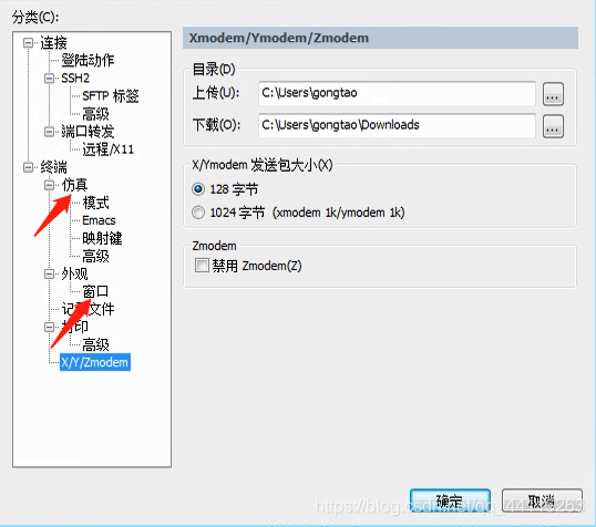 菜单栏--选项--会话选项--相关设置