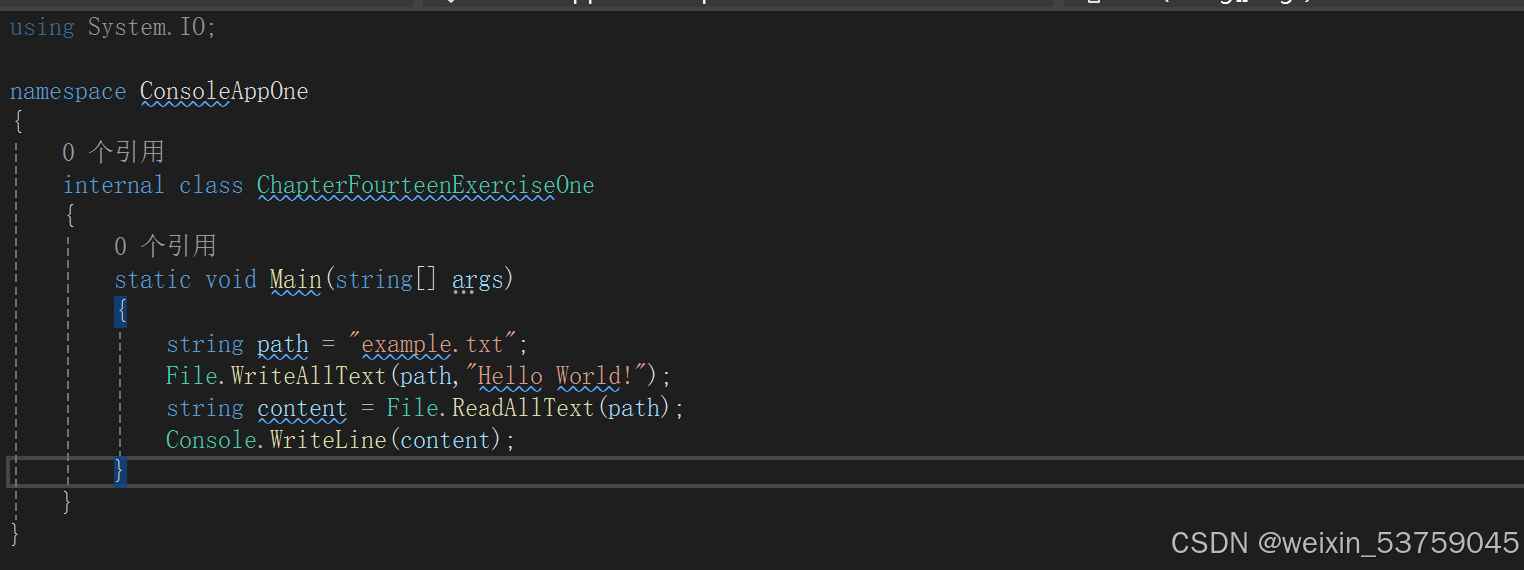System.IO包含用于在文件中读写数据的类,只有在C#应用程序中引用此名称空间才能访问这些类,而不必完全限定类型名。