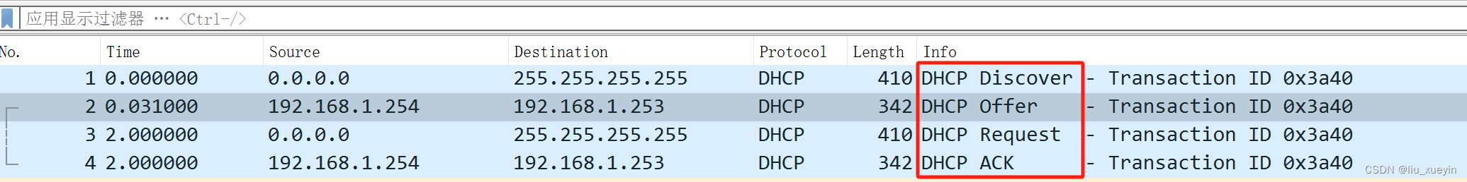 当一个DHCP客户机启动时,因为客户端还没有自己的ip地址,所以发送的源地址是0.0.0.0,目标地址是255.255.255.255,以广播方式发送DHCP Discover发现信息来寻找DHCP服务器