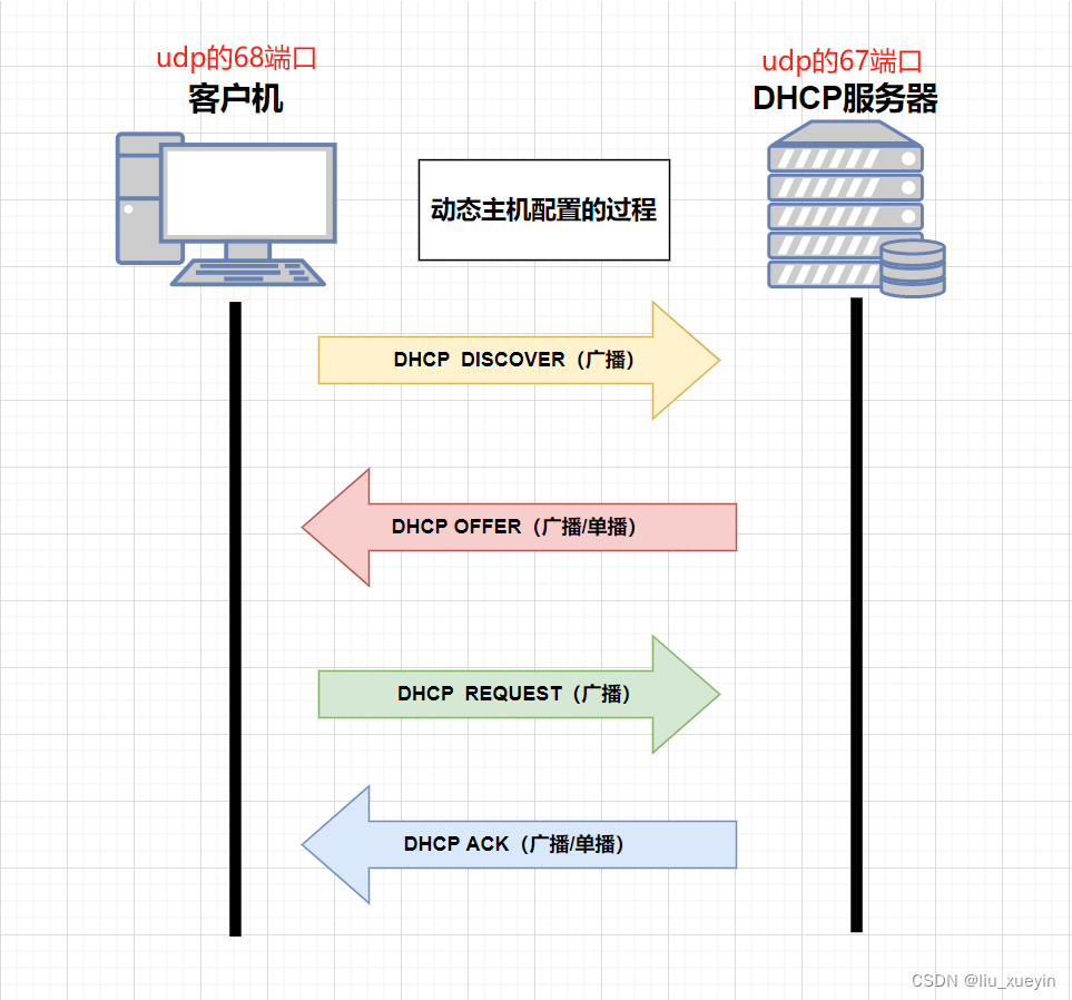 DHCP协议底层使用的是UDP协议传输,DHCP有两个部分组成,客户端和服务端;