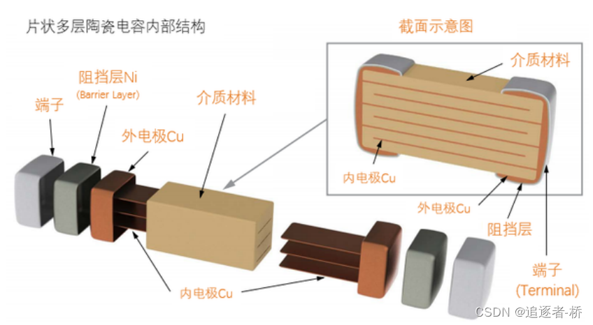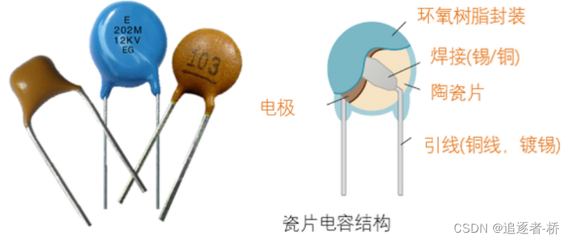 瓷片电容的主要优点就是可以耐高压,通常用作安规电容,可以耐250V交流电压。其外观和结构如下图所示: