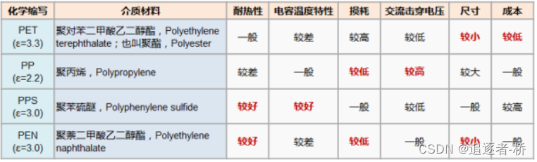 根据电容公式,电容量的大小除了与电容的尺寸有关,与电介质的介电常数(Permittivity)有关。电介质的性能影响着电容的性能,不同的介质适用于不同的制造工艺。
