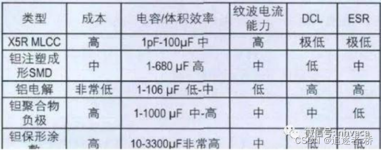 使用电解液的湿式铝电解电容应用最广;优点就是电容量大、额定电压高、便宜;缺点也很明显,就是寿命较短、温度特性不好、ESR和ESL较大。聚合物铝电解电容的ESR较小,容值更稳定,瞬态响应好;由于是固态,抗冲击振动能力比湿式的要好;可以做出较小的SMD封装。