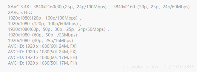 比如A7M3中的视频拍摄格式: