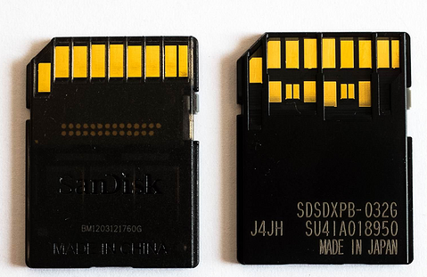 不同的UHS总线模式,对存储卡的外观有较大影响,存储卡背面的触点变多了。