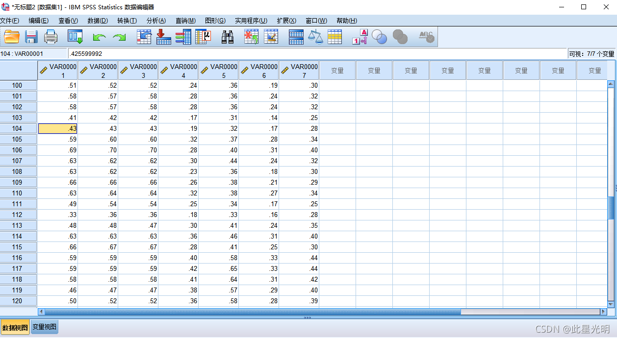 首先打开spss然后将你的数据粘贴到这个表格当中,列代表变量名称: