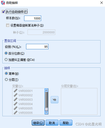 当然这里还有一个自助抽样环节,这个就需要你根据自己的需求设定了,一般不会用到: