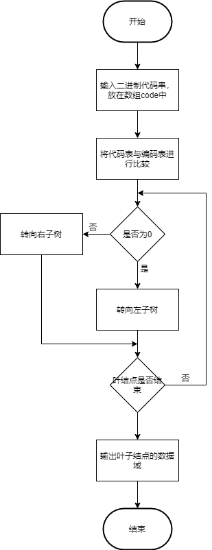 (3)哈夫曼译码程序运行流程图: