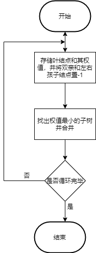 (1)构造哈夫曼树的程序运行流程图: