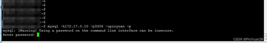输入命令 mysql -h内网地址 -P端口 -u用户名 -p 连接数据库