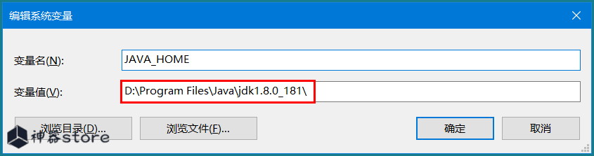 5.首先创建变量“JAVA_HOME”,变量值选择上面的jdk安装路径。