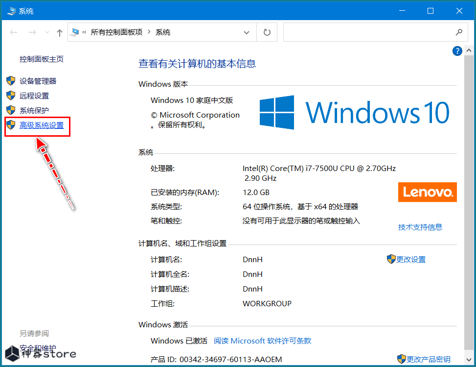 2.点击下图所示的高级系统设置。