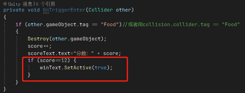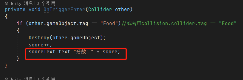 然后在代码中定义一个Text对象,并在小球吃食后将分数复制到Text