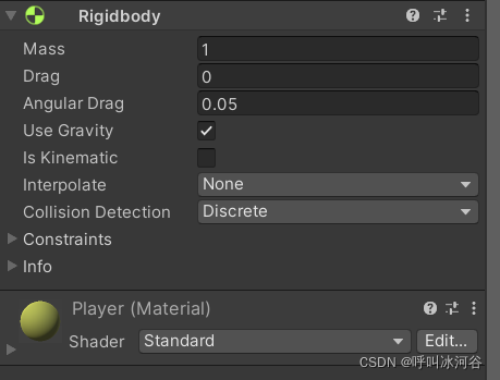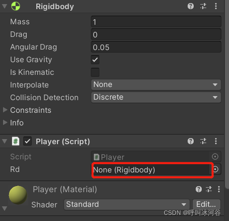 将钢体组件与脚本关联,以便后续进行业务逻辑的操作