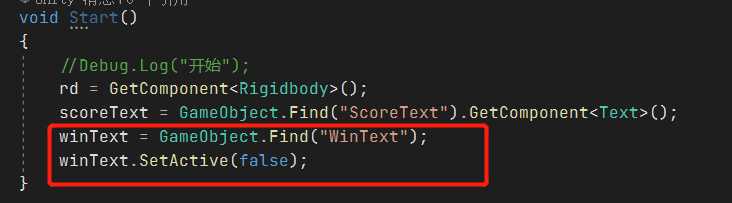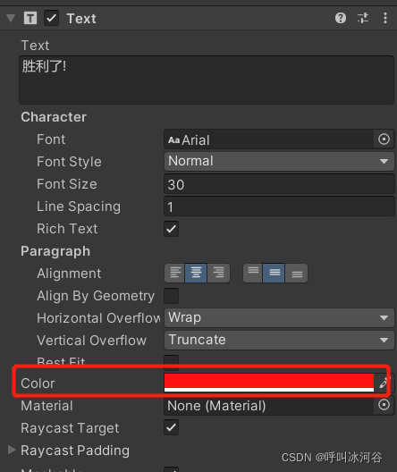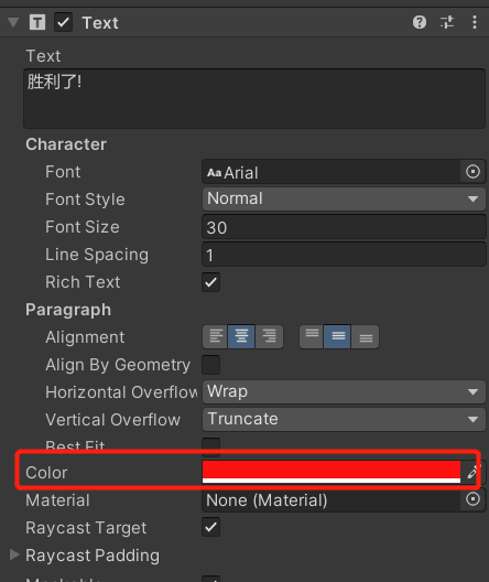 创建胜利提示:再创建一个Text(同上),放在屏幕中央,调整下字体颜色,然后编码如下