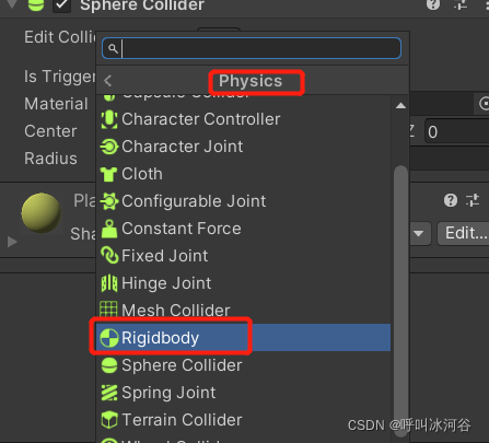四、为小球添加钢体组件(即重力、摩擦力、弹力)