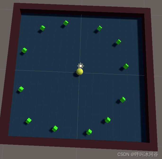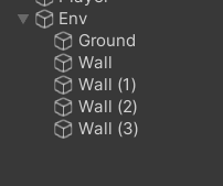 为了方便,我们将所有和场景有关的对象放到一个空对象下,方便后期对象的管理,我们新建一个鼠标右键->Create Empty,命名为Env,然后reset一下(这一步很重要,不做会导致场地错乱),然后将Wall和Ground放到此对象之下