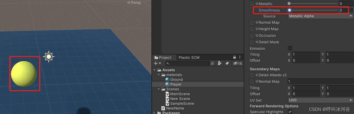 设置小球光滑程度smoothness(不让它反光太厉害)