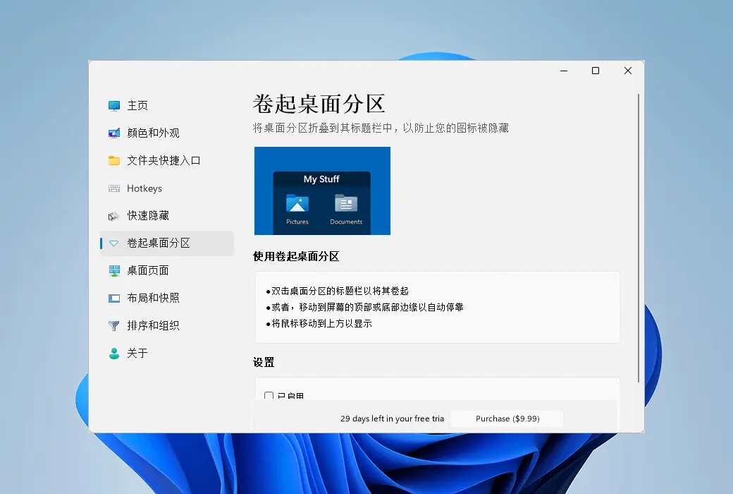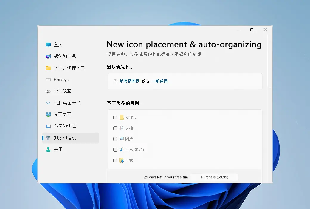 除此之外,Fences 4 还支持桌面文件夹整理,可以根据类型、名称等多种方式自定义文件夹分类方式,并快速访问你需要的文件。这一功能可以让你更好地整理和管理你的电脑文件,并更快速地找到你需要的文件。