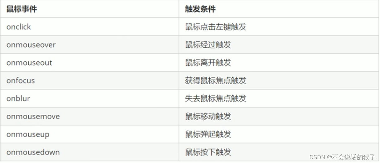 (2)事件类型,如何触发什么事件。比如鼠标点击(onclick)还是鼠标经过 还是键盘按下