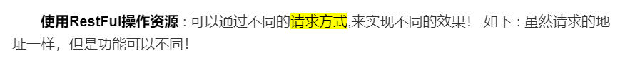 RestFul操作资源 : 可以通过不同的请求方式,来实现不同的效果! 如下 : 虽然请求的地址一样,但是功能可以不同!
