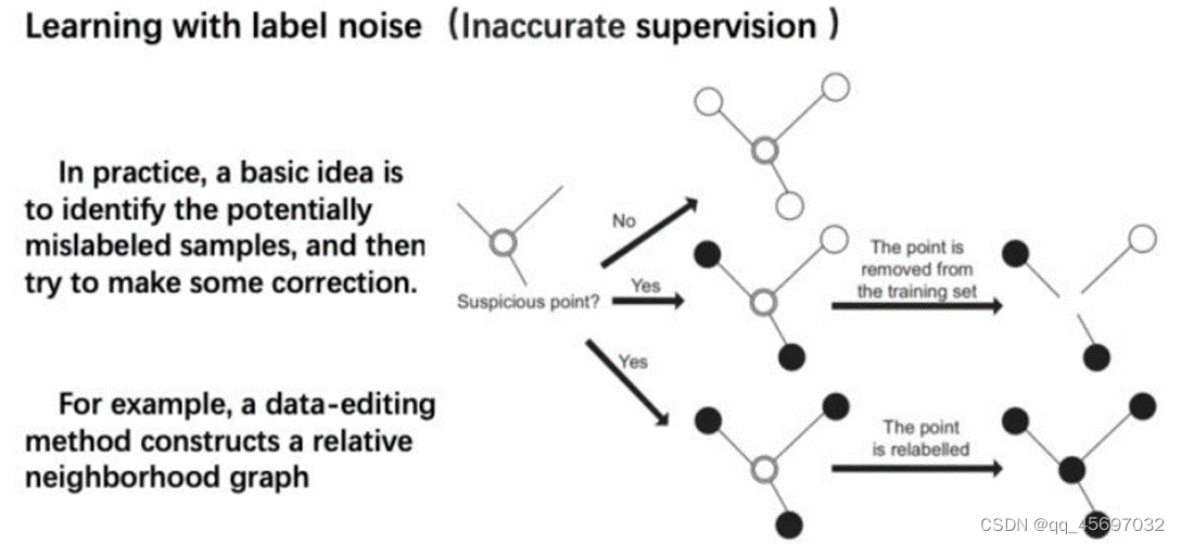 最后,解决不精确监督,我们可以考虑带噪学习(Learning with label noise)。