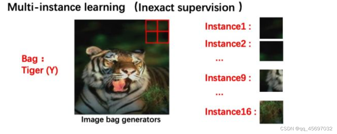 为了解决不确切监督,我们可以考虑多实例学习(Multi-instance learning)。