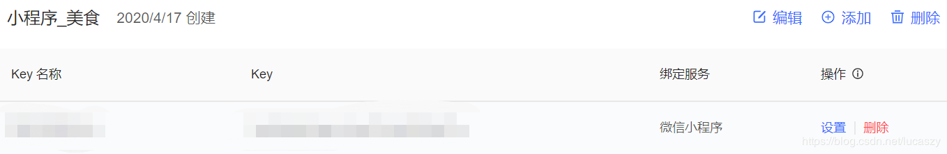 - 必须要把你的地址转为实际的经纬度才能实现导航功能,因此要使用地理编码API。我这里使用的是高德地图地理编码API,请申请微信小程序,下图是申请后结果