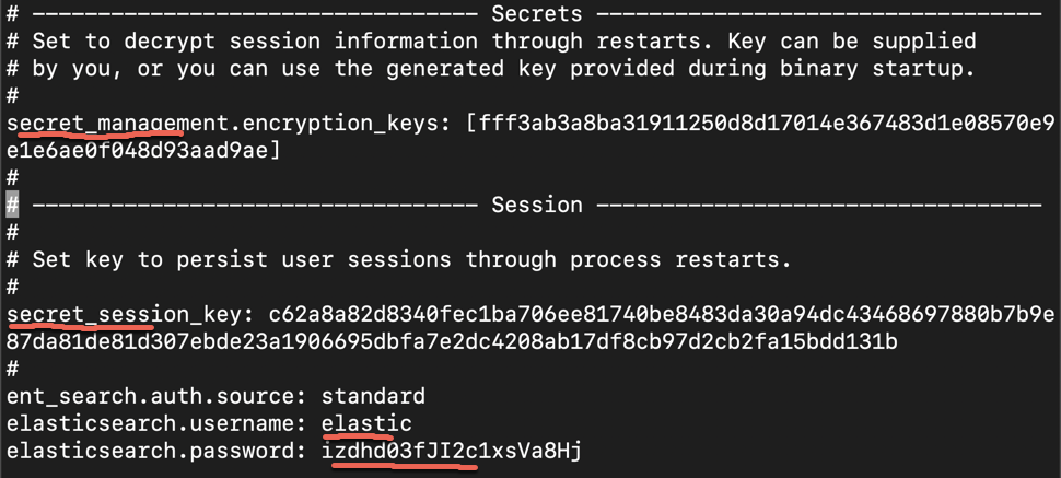 我们需要把上面的 key 填入到 config/enterprise-search.yml 文件中以保证 enterprise-search 重启后的用户会话。