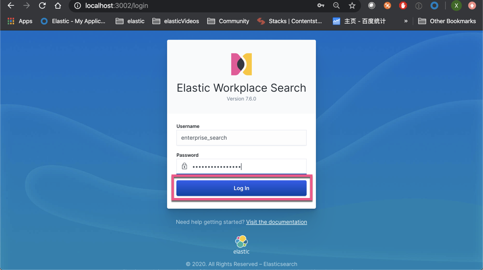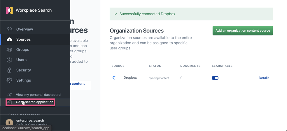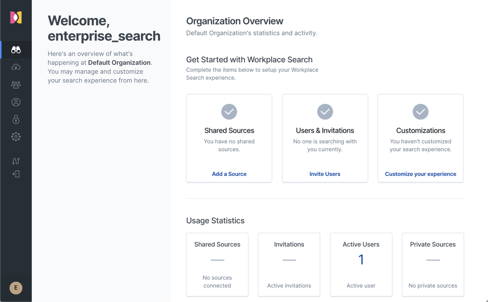 * If this is your first time starting Workplace Search, check the console output above for your user authentication credentials.