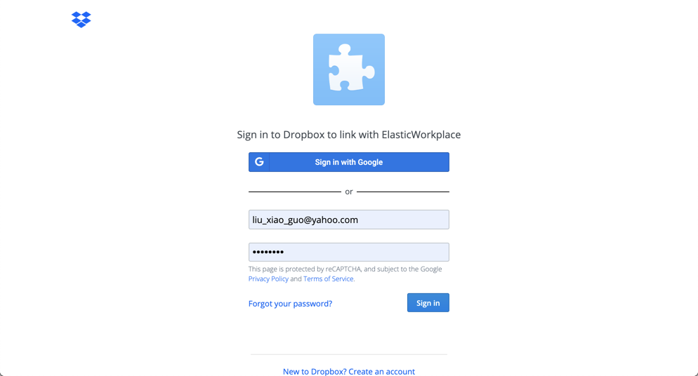 我们填入我们的 Dropbox 的用户名及密码: