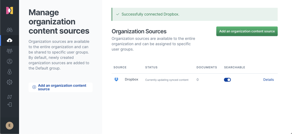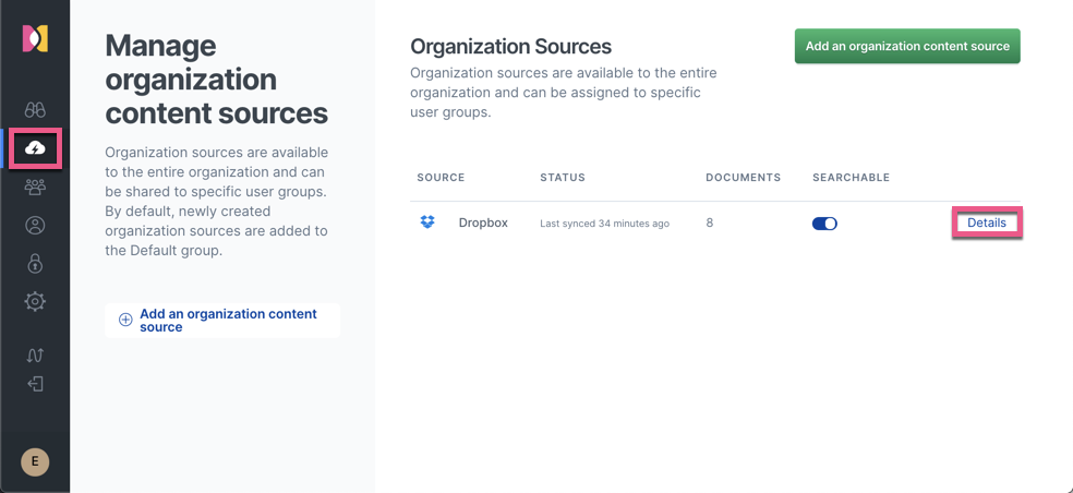 - 管理权限:或者,你可以管理用户的权限。 你可以选择哪个组有权访问哪些来源或在某些情况下使用文档级权限