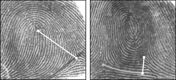 子分类的目标是进一步将一些类划分为更具体的类别。这种方法通常被人类专家用于在司法应用中执行手动指纹搜索。例如,联邦调查局(FBI,1984)根据脊线数对箕型和斗型指纹进行了手动子分类程序;对于左右箕指纹,确定中心点和三角点之间的脊线数:根据脊数定义两个子类。至于斗型指纹,追踪最左侧三角下方的箕型,直到到达最靠近最右边三角的位置;然后计算该点和最右边三角之间的脊线数。