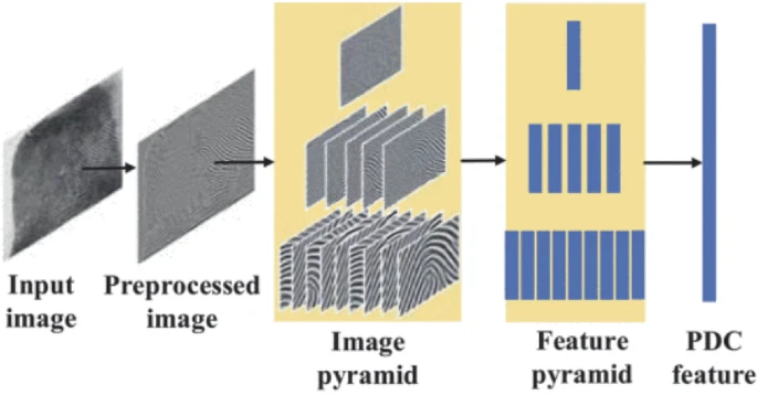 Jain等人(1999)采用两阶段分类策略:使用k-最近邻分类器从FingerCode特征向量中找到两个最有可能的类;然后利用一个特定的神经网络,训练来区分这两个类,以获得最终决策。总共训练了 10 个神经网络来区分每对可能的类。Cappelli等人(2003)提出了类似的策略,从不同的特征(方向场)开始,并使用基于MKL的分类器来找到两个最有可能的类和一个基于子空间的分类器中的一个,以便最终决策;Cappelli等人(2003年)在一个公开的数据库上报告了非常好的结果(见第3节)。Shah和Sastry(2004)提出了另一种两阶段分类策略:在第一阶段,分类器将弓型和尖弓型与箕型和斗型分开;在第二阶段,训练分类器来区分弓型和尖弓型,并训练三个分类器以一对多的方式处理左箕、右箕和斗型;作者报告了使用这种策略与各种类型的分类器(SVM、最近邻和神经网络)获得的结果。Liu(2010)提出了一种指纹分类算法,该算法使用Adaboost方法(带有决策树)来建模多种类型的奇异点特征。使用复杂的滤波器来检测多个尺度的奇异点,并为每个尺度构建一个特征向量。指纹分类由多个尺度的分类结果集合确定。Cao等人(2013)提出了一种用于指纹方向场提取和分层分类器的正则化定向扩散模型;分类算法由五个级联阶段组成。第一阶段通过使用复杂的滤波器响应来区分大多数弓型纹。第二阶段通过使用中心点和脊线流分级器来区分大多数斗型纹。在第三阶段,使用K-NN分类器通过方向场和复杂的过滤器响应来查找前两个类别。在第四阶段,脊线流分类器将 箕型与除斗型以外的其他类区分开来。最终分类由 SVM 执行。在NIST DB 4上评估的分类方法对于五类分类实现了95.9%的分类准确率,对于四类分类的分类准确率为97.2%,没有任何拒绝。