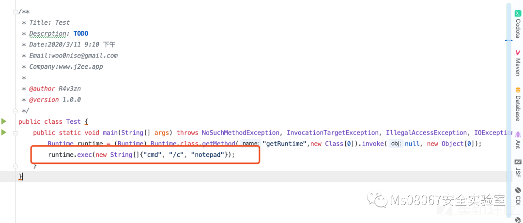 最后通过 java.lang.Runtime.exec 进行反射执行命令,最终执行的代码为 runtime.exec(new String[]{"cmd", "/c", "notepad"}) 达到执行命令的目的,弹出记事本。