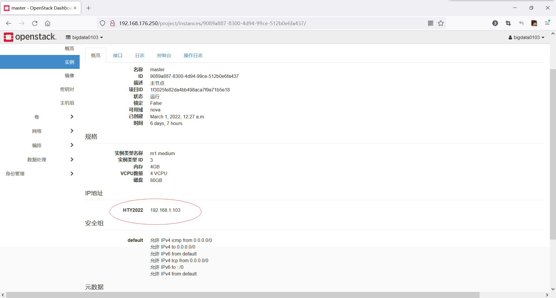 从节点slave1实例有固定私有IP地址:192.168.1.104