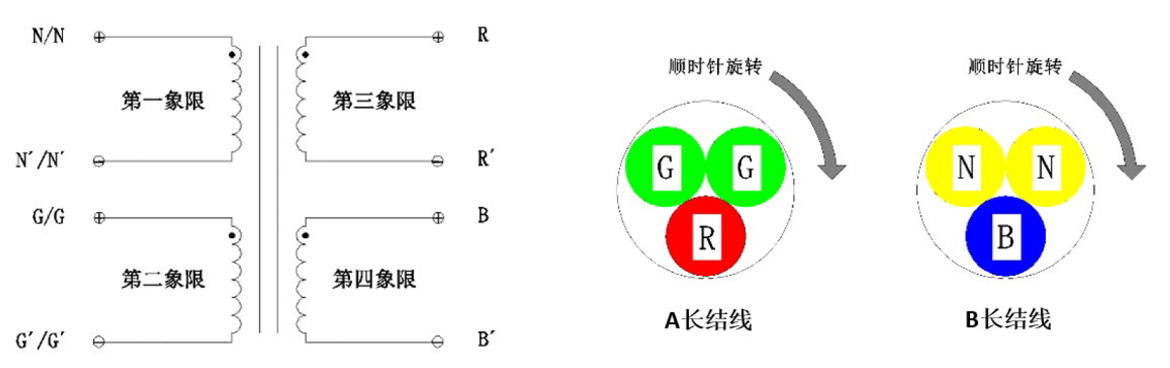 (1)将传统线包的四线工艺改善为10G线包六线工艺,为防止六根漆包线在绞结为长结线时出现杂乱线序,并防 止初 / 次级线之间两两相互信息干扰将其六根漆包线分别 绞结为 A/B 长结线,而且为增强网络信号的传输效果及漆 包线上的耦合效果,采用第一对第三象限,第二对第四象 限的耦合方式,并使用两根初级线对一根次级线进行耦合 的长结线绞结方法 ;